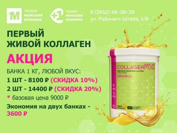 Акция на живой коллаген: 1 шт со скидкой 10% - 8100 ?, 2 шт со скидкой 20% - 14400 ?
